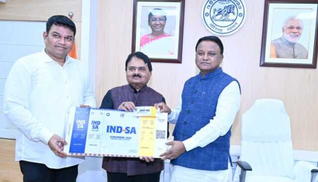 ଭୁବନେଶ୍ବର: ବାରବାଟୀରେ ହେବାକୁ ଥିବା ଭାରତ ଓ ଦକ୍ଷିଣ ଆଫ୍ରିକା T20 ମ୍ୟାଚର ଟିକେଟ ଗ୍ରହଣ କଲେ ମୁଖ୍ୟମନ୍ତ୍ରୀ ମୋହନ ଚରଣ ମାଝୀ। ମୁଖ୍ୟମନ୍ତ୍ରୀଙ୍କୁ ତାଙ୍କ ବାସଭବନରେ ଭେଟି ଟିକେଟ ପ୍ରଦାନ କରିଛନ୍ତି ଓଡ଼ିଶା କ୍ରିକେଟ ଆସୋସିଏସନ (ଓସିଏ) ସଭାପତି ପଙ୍କଜ ଲୋଚନ ମହାନ୍ତି ଓ ସମ୍ପାଦକ ସଞ୍ଜୟ ବେହେରା।