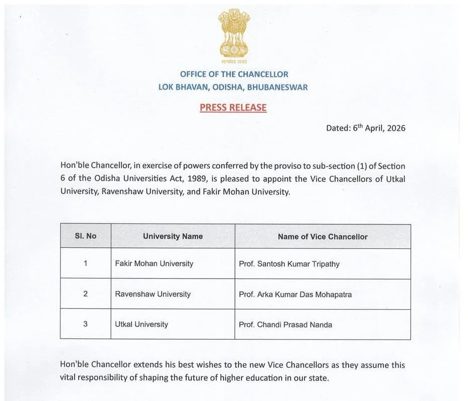 ଓଡ଼ିଶାର ବିଭିନ୍ନ ବିଶ୍ୱବିଦ୍ୟାଳୟର ନୂତନ କୁଳପତି ତାଲିକା