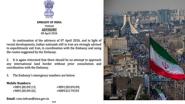 ଦୂତାବାସ ଆଡଭାଇଜରିରେ କହାଯାଇଛି କି, ଏପ୍ରିଲ ୭, ୨୦୨୬ ଘଟଣାର ସ୍ଥିତିକୁ ଦେଖି ଇରାନରେ ରହୁଥିବା ଭାରତୀୟ ନାଗରିକଙ୍କ ପାଇଁ ଦୂତାବାସ ତରଫରୁ ଜାରି ହୋଇଥିବା ମାର୍ଗଦର୍ଶନ ପାଳନ କରନ୍ତୁ । ତୁରନ୍ତ ଇରାନ ଛାଡି ଚାଲିଯାଆନ୍ତୁ । ଦୂତାବାସ ସହିତ ସଂପର୍କ ନ କରି ଅର୍ନ୍ତରାଷ୍ଟ୍ରୀୟ ସୀମା ଯାଏଁ ନ ଯିବାକୁ କୁହାଯାଇଛି ।