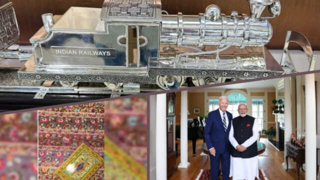 ଆମେରିକା ଗସ୍ତରେ ଥିବା ପ୍ରଧାନମନ୍ତ୍ରୀ ନରେନ୍ଦ୍ର ମୋଦି ରାଷ୍ଟ୍ରପତି ଜୋ ବାଇଡେନ ଏବଂ ତାଙ୍କ ପତ୍ନୀ ଜିଲ୍ ବାଇଡେନଙ୍କୁ ଉପହାର ଦେଇଛନ୍ତି। ପ୍ରଧାନମନ୍ତ୍ରୀ ମୋଦି ବାଇଡେନଙ୍କୁ ଏକ ରୁପାର ଟ୍ରେନ୍ ମଡେଲ୍ ଦେଇଛନ୍ତି।