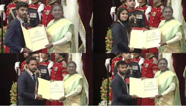 ନୂଆଦିଲ୍ଲୀ: ରାଷ୍ଟ୍ରପତି ଦ୍ରୌପଦୀ ମୁର୍ମୁ ଶୁକ୍ରବାର ରାଷ୍ଟ୍ରୀୟ କ୍ରୀଡ଼ା ପୁରସ୍କାର ପୁରସ୍କାର ପ୍ରଦାନ କରିଛନ୍ତି। ରାଷ୍ଟ୍ରପତି ଭବନରେ ଆୟୋଜିତ ସ୍ଵତନ୍ତ୍ର କାର୍ଯ୍ୟକ୍ରମରେ ପ୍ୟାରିସ୍ ଅଲିମ୍ପିକ୍ରେ ଦୁଇ ଦୁଇଟି ପଦକ ଜିତିଥିବା ମହିଳା ସୁଟର ମନୁ ଭାକର ଓ ବିଶ୍ଵ ଚେସ୍ ଚମ୍ପିଆନ୍ ଡି. ଗୁକେଶଙ୍କ ସମେତ ୪ ଜଣ ଖେଳାଳିଙ୍କୁ ଖେଳ ରତ୍ନ ପୁରସ୍କାରରେ ସମ୍ମାନିତ କରାଯାଇଛି। ପୁରସ୍କାର ବିତରଣ ସମାରୋହରେ କ୍ରୀଡ଼ା ମନ୍ତ୍ରୀ ମନସୁଖ ମାଣ୍ଡବ୍ୟ ମଧ୍ୟ ଉପସ୍ଥିତ ଥିଲେ।