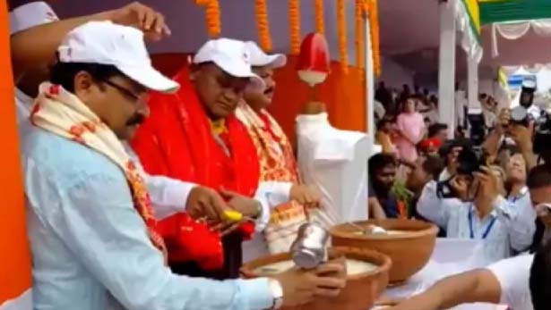 ପୁରୀ: ବିଶ୍ବ ପ୍ରସିଦ୍ଧ ରଥଯାତ୍ରା ଅବସରରେ ମୁଖ୍ୟମନ୍ତ୍ରୀ ମୋହନ ଚରଣ ମାଝୀ ଆଜି ବଡ଼ଦାଣ୍ଡରେ ଶ୍ରଦ୍ଧାଳୁମାନଙ୍କୁ ଟଙ୍କ ତୋରାଣି ବିତରଣ କରୁଛନ୍ତି। ବଡ଼ଦାଣ୍ଡ ପାର୍ଶ୍ବରେ ଖୋଲାଯାଇଥିବା ଏକ ଷ୍ଟଲରେ ମୁଖ୍ୟମନ୍ତ୍ରୀ ଟଙ୍କା ତୋରାଣି ବାଣ୍ଟୁଥିବା ବେଳେ ଶ୍ରଦ୍ଧାଳୁମାନେ ହର୍ଷୋଲ୍ଲାସର ସହିତ ଏହାକୁ ଗ୍ରହଣ କରିବା ସହିତ ଶ୍ରଦ୍ଧାର ଶୋଷ ମେଣ୍ଟାଉଛନ୍ତି। ବଡ଼ଦାଣ୍ଡରେ ମୁଖ୍ୟମନ୍ତ୍ରୀ ଟଙ୍କା ତୋରାଣି ବାଣ୍ଟିବା ନିଆରା ଭଳି ଲାଗୁଛି। ମହାପ୍ରଭୁଙ୍କ ଉଦ୍ଦେଶ୍ୟରେ ପ୍ରସ୍ତୁତ ହୋଇଥିବା ଟଙ୍କା ତୋରାଣି ପିଇ ଶ୍ରଦ୍ଧାଳୁମାନେ ନିଜକୁ ଧନ୍ୟ ମନେ କରୁଛନ୍ତି।