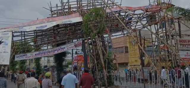 କଟକ: କଟକରେ ଦଶହରା ମାହୋଲ ଚାଲିଥିବା ବେଳେ ପ୍ରବଳ ବର୍ଷା ପୂଜାକୁ ଫିକା କରିଦେଇଛି। ପ୍ରବଳ ବର୍ଷା ଯୋଗୁଁ କଲେଜ ଛକରେ ଥିବା ଲାଇଟ୍ ଗେଟ୍ ଭୁଶୁଡି ପଡିଛି। ବର୍ଷା ଯୋଗୁଁ କେହି ନଥିବାରୁ କାହାରି କିଛି କ୍ଷତି ହୋଇନଥିବା ସୂଚନା ମିଳିଛି। ଆଖାପାଖ ଅଞ୍ଚଳରେ ବିଦ୍ୟୁତ୍ କାଟ କରାଯାଇ ରାସ୍ତା ସଫା କରାଯାଉଛି।