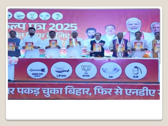 ବିହାରରେ ଏନଡିଏ ସରକାର ଗଠନ ହେଲେ ଯୁବକମାନଙ୍କୁ ୧କୋଟି ଚାକିରି ଚାକିରି ଯୋଗାଇ ଦେବାକୁ ପ୍ରତିଶ୍ରୁତି ଦେଇଛି । ଏହାସହିତ ୧କୋଟି ମହିଳାଙ୍କୁ ଲକ୍ଷପତି ଦିଦି କରାଯିବ । ଲକ୍ଷପତି ଯୋଜନାରେ ମହିଳାଙ୍କୁ ୨ଲକ୍ଷ ଲେଖାଏଁ ଦିଆଯିବ ।